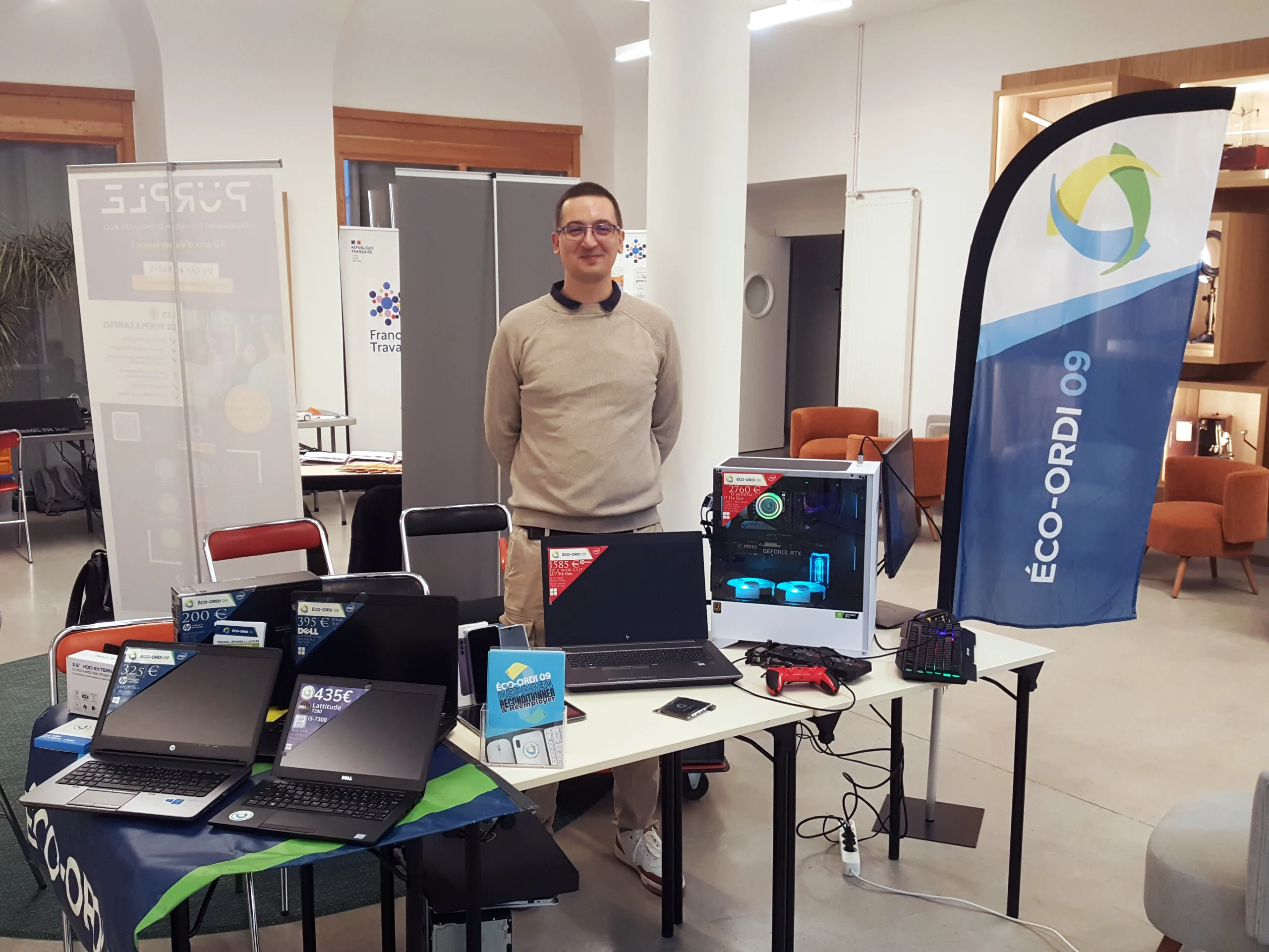 Au-delà de cette prise de parole, Éco-Ordi 09 était aussi présent tout au long de la journée avec un stand animé par son équipe de techniciens. Ce temps d’échange a permis de présenter le travail réalisé au quotidien par les équipes, en particulier autour du reconditionnement informatique, de la gestion des déchets d’équipements électriques et électroniques et des enjeux liés à un numérique plus responsable et durable. La participation d’Éco-Ordi 09 à cet événement départemental s’inscrit dans la continuité de ses actions en faveur de l’inclusion numérique, de l’économie circulaire et de l’insertion professionnelle. La Direction et l’équipe remercient RhinOcc et La Mêlée pour l’invitation à participer à cette évènement, ainsi que l’ensemble des partenaires et intervenants mobilisés pour l’organisation de cette journée.